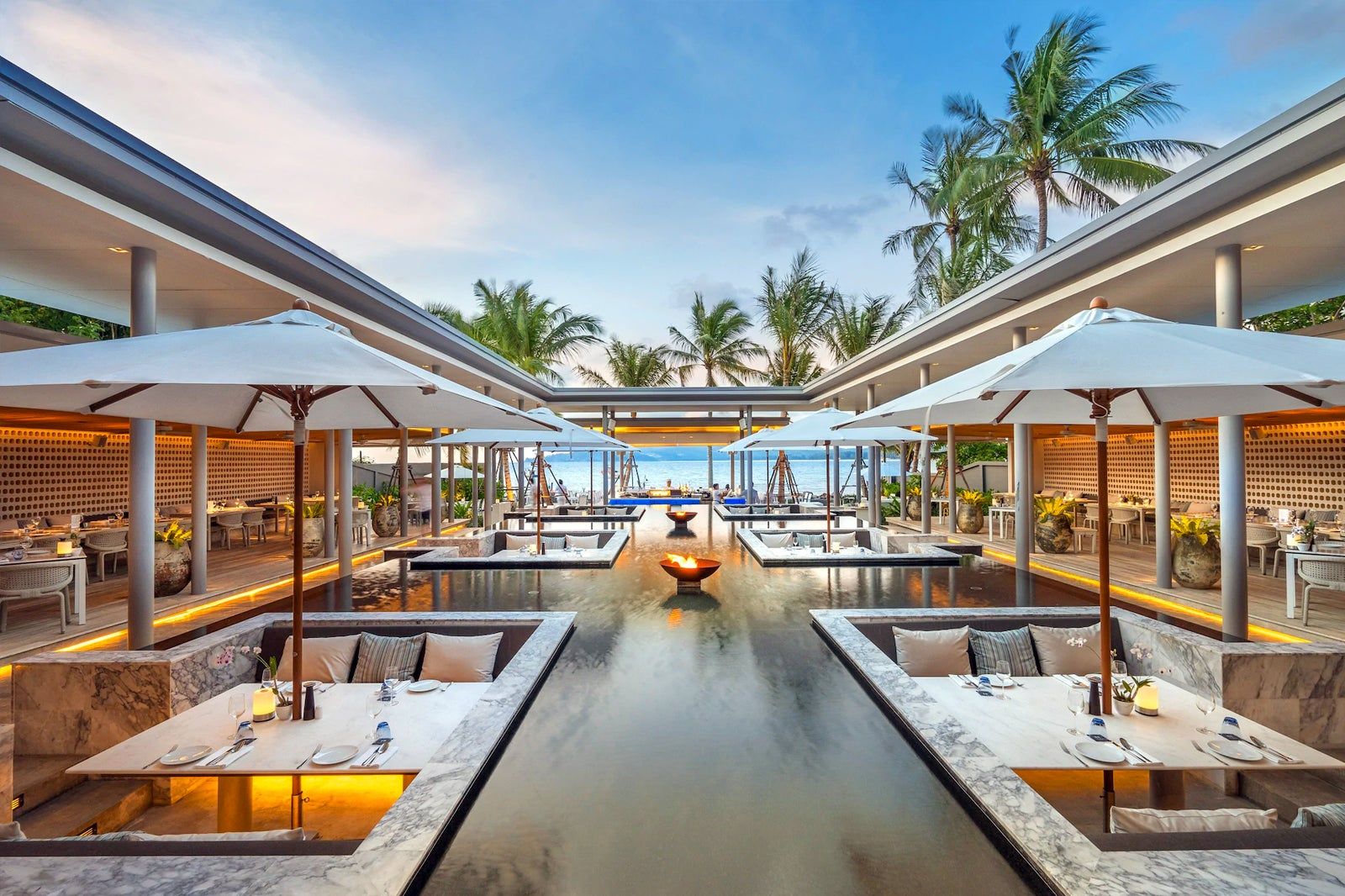 Located on the beachfront of Bangtao, Palm Seaside is a beautifully designed modern venue featuring large, open-air spaces for dining under the stars.